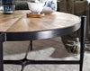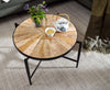 Der moderne, industrielle, runde Couchtisch ist ein faszinierendes Herzstück mit ausdrucksstarker Holzmaserung, einem stabilen Metallrahmen und einer Schutzlackierung für lange Haltbarkeit. Dieser einzigartige, mit Liebe handgefertigte Tisch verleiht Ihrem Wohnraum einen Hauch moderner Eleganz.