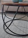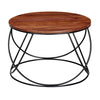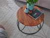Eine Mischung aus Sheesham-Massivholz und Metall. Mit seiner runden Form und der braunen Farbe verleiht es Ihrem Wohnzimmer einen modernen und industriellen Touch. Langlebig und vielseitig, perfekt für Kaffeemomente oder zur Präsentation von Dekorationen. Werten Sie Ihr Zuhause mit diesem einzigartigen und stilvollen Stück auf.