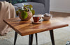 Entdecken Sie unseren einzigartigen quadratischen Couchtisch, sorgfältig handgefertigt mit modernem Design, ausdrucksstarken Baumkanten und robusten Metallbeinen, der sowohl Stil als auch Haltbarkeit bietet. Mit seiner Massivholzplatte, der Schutzbeschichtung und dem großzügigen Stauraum ist dieser Tisch die perfekte Mischung aus Schönheit und Funktionalität.