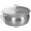 Ein außergewöhnlicher silberfarbener Tafelaufsatz mit bezauberndem orientalischem Design, gehämmerten Strukturen und viel Stauraum für Fernbedienungen und Zeitschriften. Handgefertigt aus hochwertigem Aluminium sorgen seine einzigartigen Dellen und die abgerundete Form für Eleganz und Stabilität. Werten Sie Ihren Wohnraum mit diesem einzigartigen Meisterwerk auf.