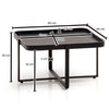 Introducing the Rootz Design Square Coffee Table, a unique blend of elegance and industrial design. This handcrafted piece features a 5 cm thick metal frame and a solid mango wood top, painted black and sealed with a clear varnish for added protection. Its raised edge design prevents objects from falling, while the height-adjustable knobs ensure stability on uneven floors. The table's maximum load capacity is approximately 15 kg.