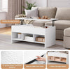 Ample Storage CapacityHidden beneath the lifting top is a spacious storage compartment, perfect for keeping clutter at bay and storing essentials. Additional open shelves provide easy access to books, magazines, or decor items.