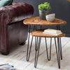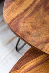 Ein stilvolles zweiteiliges Set mit Massivholzplatten und schwarzen Metallrahmen. Mit ihrer einzigartigen Holzmaserung und dem vielseitigen Design bieten diese handgefertigten Tische sowohl Funktionalität als auch Charme und ermöglichen es Ihnen, Ihren Raum mit einem Hauch von rustikal-industriellem Flair aufzuwerten.