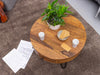 Eine faszinierende und funktionale Ergänzung für Ihren Wohnraum. Mit einem modernen runden Design, zwei Schubladen zur Aufbewahrung und stabilen Metallbeinen verfügt dieser handgefertigte Tisch über eine dunkelbraune Sheesham-Holzplatte, die für dauerhafte Schönheit mit Schutzlack versiegelt ist.