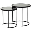 Das elegante und vielseitige zweiteilige Beistelltisch-Set von Rootz mit modernen verspiegelten Tischplatten und einem eleganten lackierten Metallrahmen verleiht jedem Raum in Ihrem Zuhause sowohl Stil als auch Funktionalität.