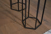 Entdecken Sie unsere attraktiven sechseckigen Beistelltische mit modernem Design, die jedem Raum einen Hauch von Eleganz verleihen. Diese aus einer harmonischen Mischung aus Massivholz und Metall gefertigten Tische zeigen eine elegante und ausdrucksstarke Holzmaserung. Jedes Set wird in liebevoller Handarbeit gefertigt und sorgt so für absolute Einzigartigkeit. Für eine lange Haltbarkeit werden die Holzoberflächen mit einem Klarlack geschützt. Nutzen Sie die Tische einzeln oder als Set und sparen Sie Platz, indem Sie sie bei Nichtgebrauch stapeln. Werten Sie Ihre Einrichtung noch heute mit diesen stilvollen und vielseitigen Beistelltischen auf.