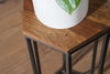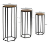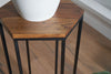 Entdecken Sie unsere attraktiven sechseckigen Beistelltische mit modernem Design, die jedem Raum eine stilvolle Note verleihen. Diese aus einer harmonischen Mischung aus Massivholz und Metall gefertigten Tische zeigen eine elegante und ausdrucksstarke Holzmaserung. Jedes Set wird in liebevoller Handarbeit gefertigt und sorgt so für absolute Einzigartigkeit. Für eine lange Haltbarkeit werden die Holzoberflächen mit einem Klarlack geschützt. Nutzen Sie die Tische einzeln oder als Set und sparen Sie Platz, indem Sie sie bei Nichtgebrauch stapeln. Werten Sie Ihre Einrichtung noch heute mit diesen vielseitigen und auffälligen Beistelltischen auf.