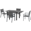 Experience outdoor dining at its finest with The Rootz garden furniture set. This 5-part collection includes a versatile 80-160 cm extendable table and four comfortable chairs with high backrests. Crafted with a sturdy steel frame and breathable textile fabric, it's designed for easy maintenance and durability in outdoor settings.