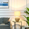 STABILER STAND: Der Lampenschirm ist in eleganter Leinenoptik gehalten, während der Lampenfuß aus PE-Rattan besteht. Darüber hinaus sorgen Anti-Rutsch-Pads für einen besonders festen Stand.