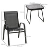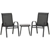 This 3-piece garden furniture set includes 2 stackable chairs and a square table with a black Textilene cover. Perfect for leisure activities with friends.