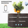 The Rootz modular metal raised bed adapts flexibly to design wishes, offering rust-resistant, galvanized steel construction for durability. Ideal for deep-rooted plants with excellent drainage, safety edges, and gloves included.