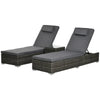 Dieses Rattan-Lounge-Set wird mit zwei Sonnenliegen und einem passenden Beistelltisch geliefert. Jeder Longline-Sitz verfügt über fünf verstellbare Positionen, sodass Sie sich in der gewünschten Position zurücklehnen und entspannen können. Die gepolsterten Oberkissen sorgen für Komfort und extra dicke Kissen sorgen für zusätzlichen Halt. Der Beistelltisch ist mit einer Glasplatte ausgestattet – ein sicherer und stabiler Platz für Bücher, Getränke, Speisen – und was auch immer! Jetzt wird es wärmer – vervollständigen Sie Ihren Garten mit Stil.