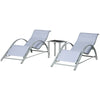 - Das 3-teilige Campingliegen-Set besteht aus 2 Liegestühlen und 1 Teetisch