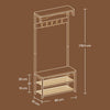 Introducing a compact yet stylish solution for your hallway needs. The Rootz cloakroom stand artfully combines coat hooks, a bench, and shoe racks to keep your entryway organized. Crafted from E1 wood and robust metal, this multifunctional stand offers durable and practical storage. It includes 5 sturdy hooks for your essentials and a comfortable bench for changing shoes, with the added convenience of vintage flair.