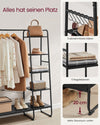The Rootz clothing rack is designed with both style and functionality in mind. Made from robust wooden chipboard and steel, its elegant ebony black matte finish complements any space. With a large capacity and multiple hooks, it's perfect for hanging clothes, bags, and accessories, making it an essential addition to your home or boutique.