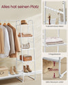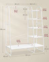The Rootz Clothing Rack is a perfect blend of style and functionality, featuring six sturdy hooks and a sleek design. Crafted from durable wooden chipboard and steel, this rack provides ample storage with a maximum resilience of 220 kg, making it an ideal solution for any wardrobe.