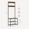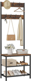 The Rootz Clothing Racks, Shoe Shelf, Seat, 7 Hooks, Wood and Steel, Rustic Brown Design