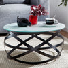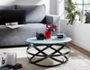 Wir stellen Ihnen unseren auffälligen Couchtisch vor, der sich durch ein modernes Design mit einer runden Tischplatte für vielseitige Aufbewahrung, einem robusten, ineinander verschlungenen Metallrahmen für Stabilität und einem eleganten weißen Marmor-Look auszeichnet, der jedem Raum einen Hauch von Eleganz verleiht.