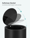 Gently and Quietly Closing LidThis cosmetic bucket features a lid that closes gently and quietly, ensuring there is no loud slamming noise and making it ideal for use in any bathroom environment.