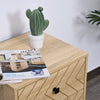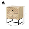 This bedside cabinet from Rootz is a stylish storage option for your home! The color combination of a light natural wood look with black metal ensures timeless elegance and therefore fits into any living style. The two drawers ensure tidy storage and the four stylish metal feet ensure a secure stand and good air circulation. This sideboard will soon brighten up your home with its zigzag pattern!Vertical design saves space: The Rootz bedside table's vertical design is perfect for small spaces, making it an ideal choice for compact bedrooms or living areas.Versatile for multiple rooms: Whether in the bedroom, living room, or workroom, this nightstand seamlessly fits into any setting, offering both functionality and style.Ample storage with 2 drawers: The two spacious drawers provide sufficient storage space for your small items, keeping your room tidy and organized.Durable and robust construction: Made from a combination of MDF and chipboard with a melamine surface, this side table is built to last, ensuring long-term use.Included in the package