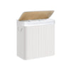 WAS SIE BEKOMMEN : Einen Rootz 150-Liter-Wäschekorb mit 3 Fächern, der aus robustem Bambus gefertigt ist und viel Stauraum für Ihre schmutzige Wäsche und Bettwäsche bietet. Gönnen Sie sich diese Truhe und machen Sie Ihren Waschtag einfacher!