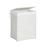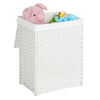 GEFLOCHTENE SCHÖNHEIT: Sorgfältige Handwerkskunst, nüchterner Weißton – dieser handgeflochtene Wäschekorb aus synthetischem Rattan ist genau das, was Sie brauchen, um Ihre schmutzige Wäsche zu verstecken und Ihr Zuhause aufzupeppen