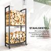 The Rootz Firewood Rack for Inside, Steel, 60 x 30 x 119cm, 2 Levels, Roller Black