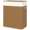 The Rootz bamboo laundry basket is a stylish and practical solution for organizing your laundry. Featuring two compartments, this 100L washing collector helps you efficiently sort clothes while cable handles make it easy to carry. The removable bag further simplifies laundry day. Its elegant bamboo weave and modern design complement any home décor, making it both functional and fashionable.