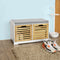 Details: Schuhschrank im modernen Design mit weich gepolstertem Kissen, gute Wahl für Flur und Wohnzimmer. Es besteht aus Stauraum für mehrere Schuhe in zwei praktischen, herunterklappbaren Fächern unter dem gepolsterten Sitzbereich. In jeder Klappschublade befindet sich ein Brett, das zur Einstellung des Abstands bei unterschiedlichen Schuhgrößen herausnehmbar ist. Das abnehmbare Sitzkissen ist ideal für bequemes Sitzen beim An- und Ausziehen der Schuhe. Dieser Schuhschrank passt perfekt zu Ihrer modernen oder traditionellen Einrichtung. Produktdetails: Material: MDF, Spanplatte, Stoff. Abmessungen: B97 × T30 × H46 cm. Gewicht: 15 kg. Tragfähigkeit: 90 kg. Der Artikel wird flach verpackt geliefert und muss selbst zusammengebaut werden. Detaillierte Anweisungen werden mitgeliefert. Die Dekoelemente sind nicht im Lieferumfang enthalten. Wenn Sie Fragen haben, kontaktieren Sie uns bitte per E-Mail. Wir werden Ihnen so schnell wie möglich antworten!