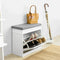 Details: Schuhschrank im modernen Design mit weich gepolstertem Kissen, gute Wahl für Flur, Wohnzimmer und Schlafzimmer. Es bietet Platz für mehrere Schuhe in einem praktischen, herunterklappbaren Bereich unter dem gepolsterten Sitzbereich. In der Klappschublade befindet sich ein Brett, das zur Einstellung des Abstands bei unterschiedlichen Schuhgrößen herausnehmbar ist. Das abnehmbare Sitzkissen ist ideal für bequemes Sitzen beim An- und Ausziehen der Schuhe. Dieser Schuhschrank passt perfekt zu Ihrer modernen oder traditionellen Einrichtung. Die gleiche Version in kleinerer Größe: Artikel FSR82-KW, Maße: B60 × T24 × H51cm. Produktdetails: Material: MDF, Stoff. Abmessungen: B75 × T24 × H51 cm. Gewicht: 13kg. Tragfähigkeit: 150 kg. Der Artikel wird flach verpackt geliefert und muss selbst zusammengebaut werden. Detaillierte Anweisungen werden mitgeliefert. Die Dekoelemente sind nicht im Lieferumfang enthalten. Wenn Sie Fragen haben, kontaktieren Sie uns bitte per E-Mail. Wir werden Ihnen so schnell wie möglich antworten!