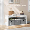 Organize your home with The Rootz Shoe Bench featuring 3 fabric drawers and an open compartment for versatile storage options. Made of durable chipboard and MDF, supporting up to 220 kg, this bench is perfect for your hallway, living room, bedroom, or children's room. Easily assemble with our included instructions.
