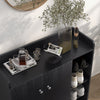 This shoe cabinet offers functionality and style, with 4 open compartments and a double cabinet door for convenient storage.