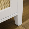 Rootz Shoe Bench Storage - Entryway Organizer - Sliding Door Bench - Rattan Design - 80cm x 35cm x 45cm - White, Brown