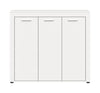 This modern white shoe cabinet is designed to efficiently organize your footwear in the entryway. It features three doors and ten height-adjustable shelves, creating 12 compartments to store up to 18 pairs of shoes. Its elegant design complements any hallway or cloakroom, providing a functional and stylish solution for shoe storage.