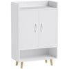 The Rootz shoe cabinet is a sleek and modern solution for your hallway, offering a hidden cabinet, spacious top shelf, and open bottom shelf for storing shoes and accessories efficiently. Crafted from chipboard and solid wood, this shoe rack is durable and easy to clean, making it a perfect fit for various interior styles.