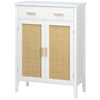 This beautiful shoe cabinet with vintage-style woven rattan fronts is perfect for organizing shoes and items in various rooms. The modern design, equipped with two doors and a drawer, offers ample storage space for your belongings.