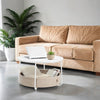 The Rootz: Stylish Side Table with Fabric Basket in White & Brown