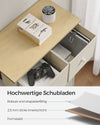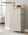 Versatile and Stylish DesignThe camel yellow-cream white color palette and fabric drawer fronts add a touch of sophistication to any decor. Its versatile design makes it suitable for various rooms, including bedrooms, living rooms, or offices.
