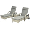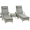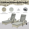 Our 3-piece garden furniture set from Rootz made of polyrattan is characterized by both its innovative design and first-class workmanship. Consisting of two sun loungers and a side table, it is the perfect set for cozy summer days for two. The hand-woven polyrattan is weather-resistant and extremely stable. The metal frame of the loungers is powder-coated and therefore protected against rust.Weather-Resistant and Durable: The hand-woven polyrattan is UV and weather-resistant, ensuring that your furniture set remains in pristine condition, no matter the weather.Adjustable Comfort: The sun loungers feature tilt-adjustable backrests with five levels, allowing you to find the perfect angle for ultimate relaxation.Easy Mobility: Equipped with two wheels, the sun loungers are easy to move, so you can effortlessly reposition them to catch the best sunlight.High Stability and Load Capacity: The strong metal frame provides high stability and can support up to 160 kg for the loungers and 50 kg for the table.- Color: Gray