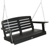 Enjoy the nature of your garden for two on our swing bench from Rootz. Take a seat and let the soothing rocking movements gently rock you back and forth. The included metal chains ensure a stable and robust suspension. The deep seat and high backrest offer maximum seating comfort. The bench is made of HDPE and can withstand almost any weather and condition.Weather-resistant HDPE material: The Rootz swing bench is crafted from HDPE, ensuring it will not splinter, break, peel, or rot, making it perfect for all weather conditions.Plenty of space for two adults: With generous dimensions, this swing bench comfortably accommodates two adults, providing ample space for relaxation and enjoyment.Strong metal chains: The included metal chains offer a secure and stable hold, ensuring your safety while you enjoy the gentle rocking motion.Ultimate comfort: The high backrest and wide armrests provide maximum comfort, while the slatted seat design prevents water accumulation and ensures air circulation.- Color: Black