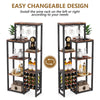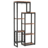 This floor rack combines retro wood with a black frame, creating an industrial style suitable for various spaces. Ideal for wine display in entryways or living rooms and for storage in cellars or bar areas.