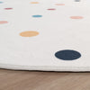 Is there really a pot of gold at the end of the rainbow? One thing is certain: crossing this enchanting rainbow leads to a world brimming with fun and games. Adventures steeped in fantasy await both girls and boys alike. Our modern *short pile rugs* in a round shape bring a unique ambiance to any child’s room, providing a playful visual highlight that captivates the imagination. The charming rainbow print features subtle color variations, inviting children to not only engage in play but also to unwind and relax.
