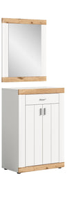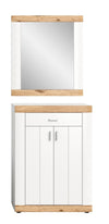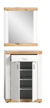 Elevate your entrance area with The Rootz Wardrobe with System, crafted with high-quality wood material in a modern design. This 2-piece combination Laredo set in white matt finish and oak detailing includes a shoe cabinet and wall mirror, offering functionality and style.