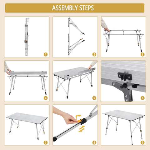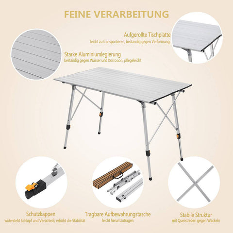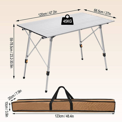Rootz Aluminum Camping Table - Portable Folding Table - Adjustable Outdoor Table - Sturdy, Weather-Resistant, Lightweight - 68.5cm x 59-78.5cm x 120cm
