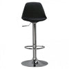 Ein Sitz in Lederoptik, ein elegantes trompetenförmiges Gestell mit Fußstütze und eine verchromte Metallstruktur für optimale Stabilität. Mit einem um 360° drehbaren Sitz, einer integrierten gummierten Fußplatte und einer stufenlosen Sitzhöhenverstellung bietet dieser Barhocker sowohl Komfort als auch Vielseitigkeit. Es besteht aus hochwertigen Materialien, sorgt für Langlebigkeit und hat eine maximale Tragfähigkeit von 110 kg. Werten Sie Ihr Zuhause oder Ihren Gewerberaum mit diesem modernen und zuverlässigen Barhocker auf.