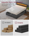 This innovative bed in grey and black not only serves as a stylish centerpiece but also features a charging station for your convenience. Its robust design, made from steel and foam, ensures durability while providing optimal comfort for restful nights. With spacious storage drawers, you can keep your bedroom organized and clutter-free.