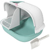 Discover the Rootz litter box with an innovative semi-open channel and sand waste holes that keep your home clean. The closed exterior and front flap, along with the included scoop, make cleaning easy. A private retreat for cats up to 3.5 kg.