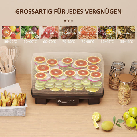 Rootz Dehydrator - Food Dryer - Mushroom Dryer - Efficient Hot Air Circulation - 43 x 29.5 x 28 cm - Black-Transparent