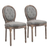 SCHICKER EUROPÄISCHER STIL: Ein Set aus 2 Esszimmerstühlen im eleganten Vintage-Chic-Stil, der sich in einer anmutigen ovalen Form, einer geknöpften, getufteten Rückenlehne, einem klassischen Farbschema und aufwendig geschnitzten Mustern an den Beinen widerspiegelt.