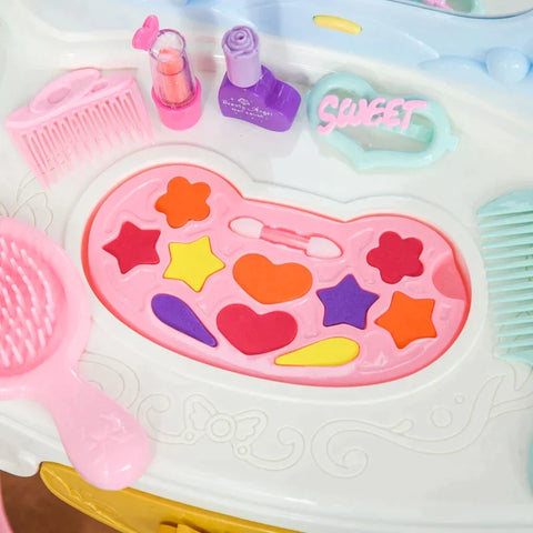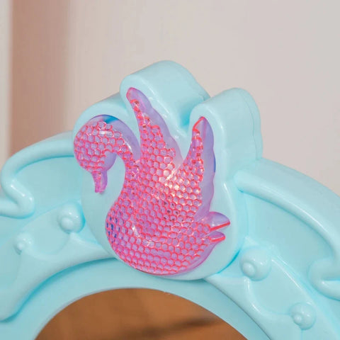 Rootz Schminktisch – 20-teiliger Kinder-Schminktisch mit Hocker – Rosa + Weiß + Blau – 41 cm x 27 cm x 82 cm